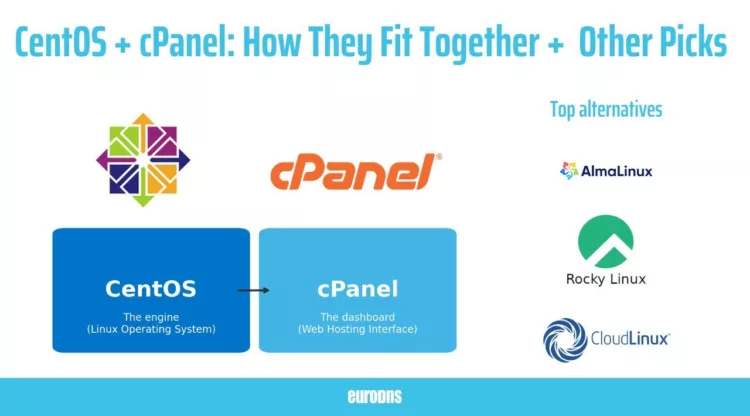 - CentOS (legacy): once rock-solid and free; now EOL (CentOS 7) or rolling (CentOS Stream) and not a modern base for cPanel.