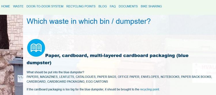 This Croatian website shares information about how to recycle properly and according to what schedule.